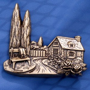 Bronze funéraire Lille. Bronze en souvenir du défunt de dimension 60 X 65 mm. Le bronze funéraire Lille représente une maison avec un banc vide. Symbole de l'absence, il peut être posé sur une plaque funéraire à Lille. Vous pouvez acheter en ligne le bronze funéraire Lille pour la Toussaint, ou faire une livraison de fleurs à Lille