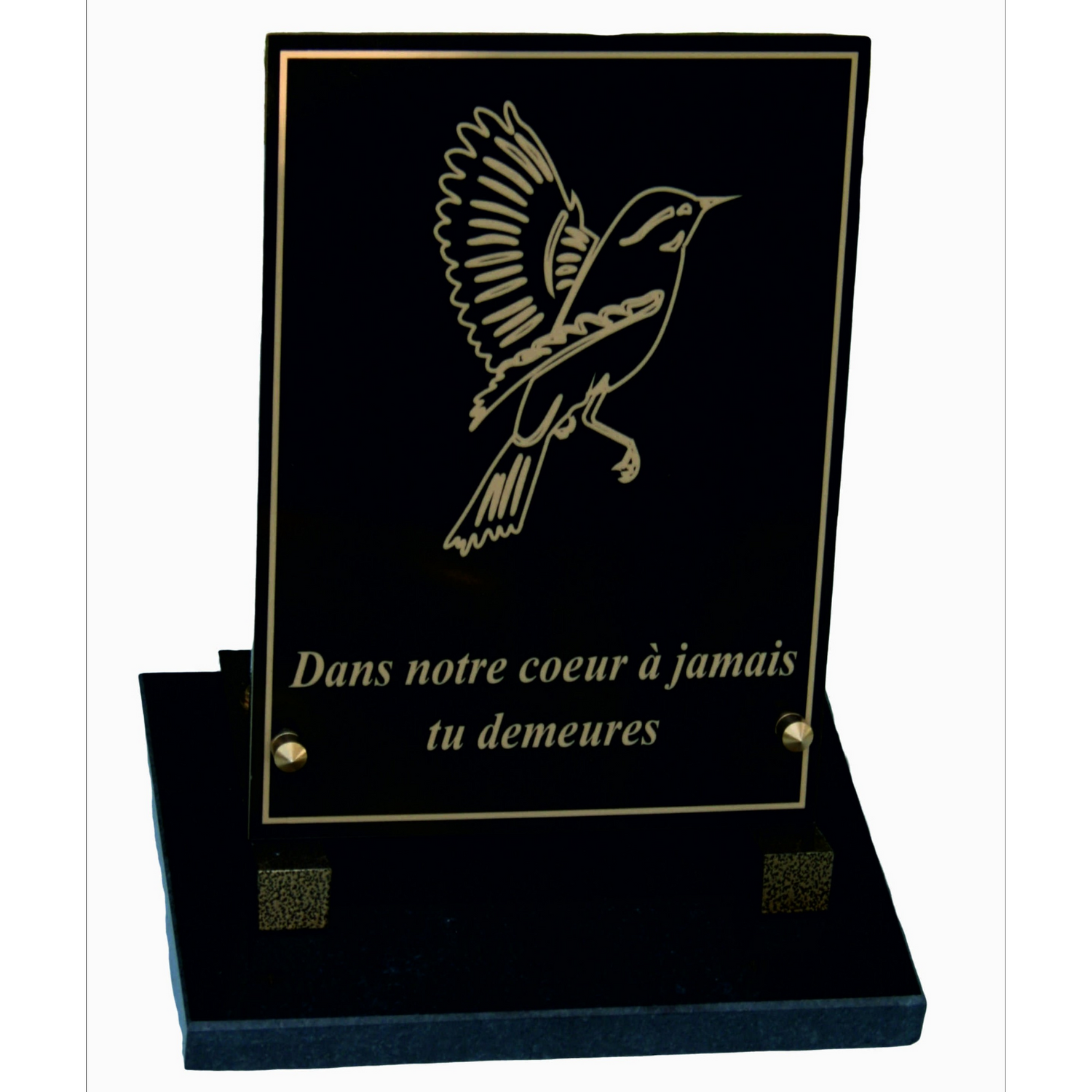 Nous vous enverrons une maquette de la plaque funéraire oiseau doré avant la fabrication. Nous mettrons votre plaque oiseau en production après validation de la maquette. Si la 1ère maquette de votre gravure oiseau ne vous convient pas, vous pourrez toujours demander une autre maquette.