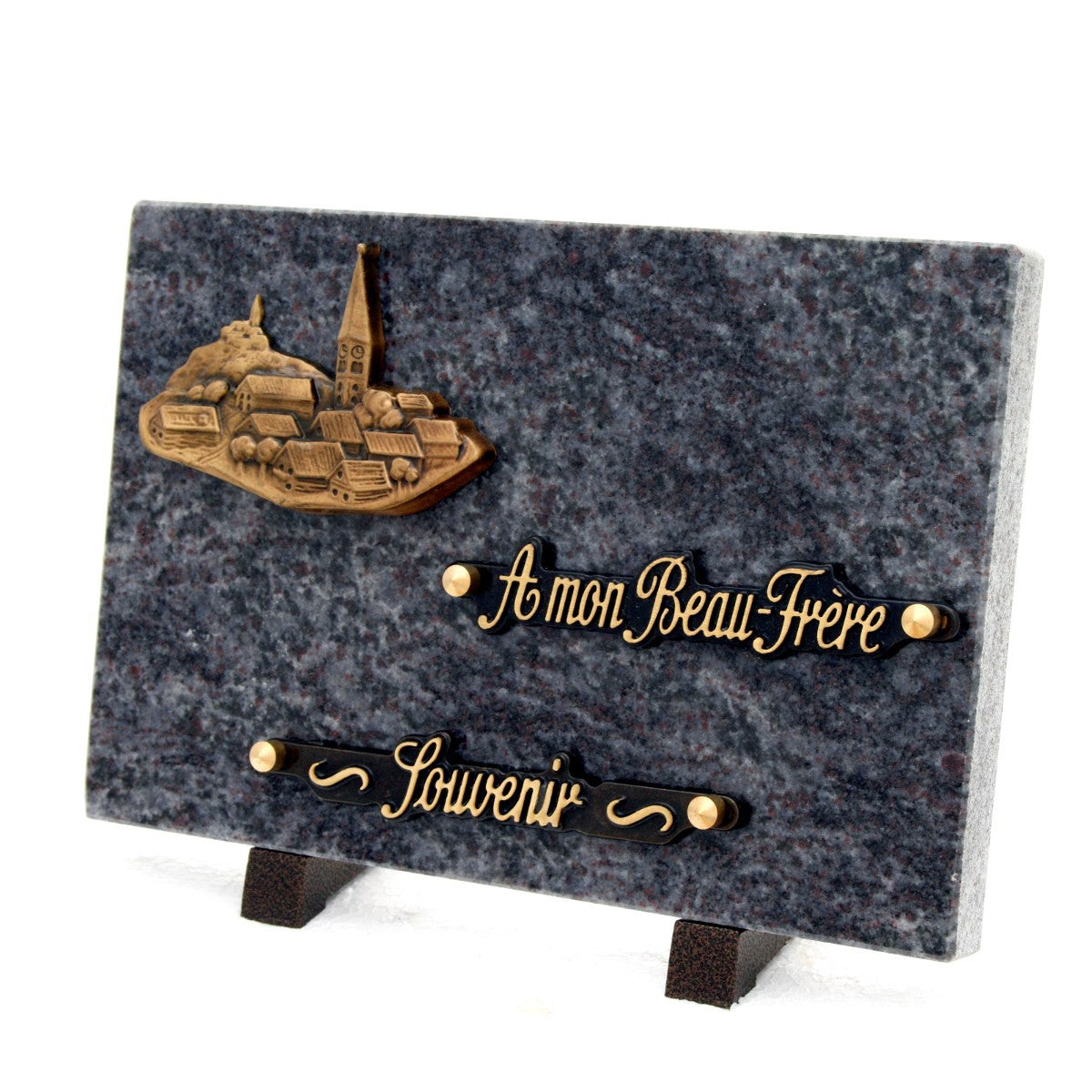 Plaque funéraire à envoyer comme hommage lors de la perte d'un être attaché à son village, ses origines. Cet article est actuellement remplacé par le modèle . Un geste de souvenir pour votre voisin ou ami. Plaque funéraire bien proportionnée avec ses deux emplacements pour inters et le village excentré. Nos articles funéraires peuvent recevoir des textes sur mesure avec supplément.